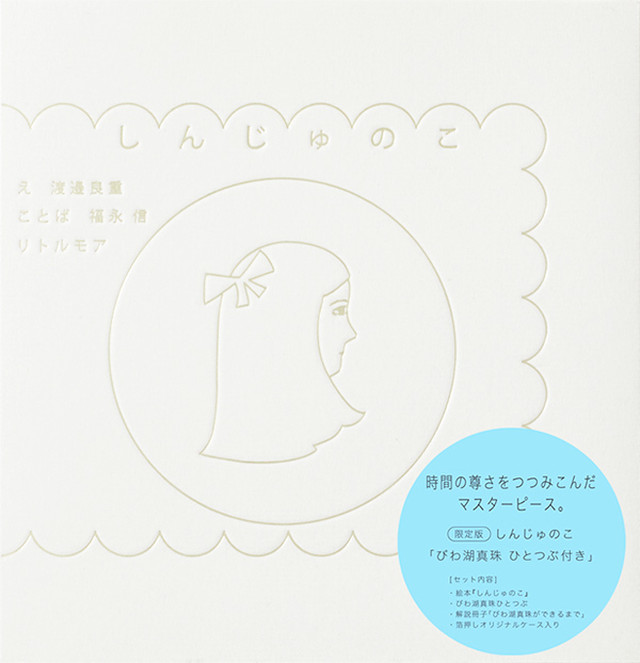 <発送についてのご注意点をページ下部で必ずご確認ください > ※ラッピングをご希望の方はコチラ https://ofs.theshop.jp/items/28377713 = = 琵琶湖の自然が生む《びわ湖真珠》、 絵本『しんじゅのこ』に、 本物の《びわ湖真珠》をパッケージした 完全限定版発売!! = = 封入される《びわ湖真珠》は、琵琶湖の固有種、池蝶貝から生まれる淡水真珠です。核を入れず、すべてが真珠層でできている「無核真珠」は、びわ湖真珠の代名詞。ひとつとして同じ形はなく、独特の美しさと照りで輝きます。生産者の知恵と努力、琵琶湖の自然に育まれ、6年の歳月をかけて完成します。 オリジナルケースは、バスク3層構造により、断面まで白さを追求。角度により様々な表情を見せる銀の箔押し印刷で、清らかで上品な輝きを包みこんだ特別仕様。 真珠の絵本と、ひとつぶの真珠。物語が現実につながる夢の限定版! 今年を特別にする1冊。時間の尊さをつつみこんだマスターピースの誕生です。 〇 ○ ○ セット内容 ・絵本『しんじゅのこ』 ・びわ湖真珠 ひとつぶ ・解説冊子「びわ湖真珠ができるまで」 ・箔押しオリジナルケース入り 〇 ○ ○ 絵本『しんじゅのこ』特設サイト http://www.littlemore.co.jp/shinjunoko/ え 渡邉良重 ことば 福永信 デザイン:渡邉良重 オリジナルケース・外寸215mm×205mm 絵本・190mm×190mm/上製/48ページ 【送料に関して】 1回のご注文で送料設定が異なる商品を複数購入された場合、送料が高い方の料金が自動で適用されます。 ※「新型コロナウイルス」の影響により、現在スタッフの健康と安全に配慮した運営体制をとっております。 そのため、ONLINE SHOPに関しても注文は24時間受け付けておりますが 商品の発送は週2回程度の出荷日を基本とさせていただきます。 お客様にはご迷惑をおかけし、誠に申し訳ございませんがどうぞご了承ください。 詳細は以下ページご確認ください。 https://ofs.theshop.jp/about 【期間】 2020年 4月13日(月)~当面の間 ※状況により期間の延長や、変更等を行なう可能性がございます。 【出荷日】 ご注文確認後、3営業日を目処に発送