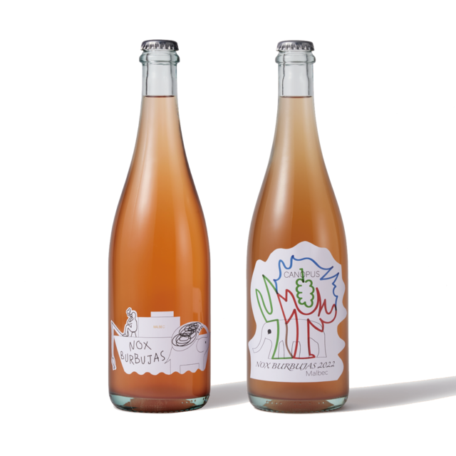 Malbec マルベック / フリッツァンテ ナチュラル(弱発泡性) マルベックから生まれた、まさにGlou-Glou(グルグル=フレッシュでライトなごくごく飲めてしまうワイン)な、楽しくて生命力溢れるフリッツァンテ ナチュラル。大き過ぎたり強過ぎる泡は、お食事との相性があまり良くないと考える生産者のガブリエル。瓶内二次発酵で丁寧に造られた優しい泡は、一般的なスパークリングワインの半分程度のガス圧で、アペリティフはもちろん、お食事の良きパートナーです。 ─── VINIFICATION ─── 手摘み。プレス後、コンクリートエッグで30日間マセレーション・発酵。コンクリート容器で3ヶ月間貯蔵。その後リキュールとボトリングして瓶内二次発酵。 一般的に瓶内二次発酵を促すためのリキュールは、スティルワインに酵母とショ糖や甜菜糖などの糖分を加えたものですが、NOXは加工された糖分は使用しません。糖分が残る二次発酵前のNOXと野生酵母でできたリキュールを加えることで二次発酵を促します。 スパークリングワインの炭酸ガス生成法の中でも、瓶内二次発酵は、シャンパンの製法でも使われる古くからの技法で、最も手間と時間がかかり上質な泡を生み出すといわれています。 11℃前後に冷やしてお召し上がりいただくのがおすすめです。 ─── TASTING NOTE ─── 生き生きとした酸味とマルベックの大胆なタッチ。ストロベリー、プラム、グレープフルーツ。 ─── PAIRING IDEAS ─── 食前酒として。また、カラマリや天ぷら、フィッシュ&チップス、クリーミーなチーズなど。 ※抜栓後、コルク栓などで栓をして持ち歩くなど、振動が加わるとガス圧により栓が勢いよく飛び出す可能性があり非常に危険です。残った発泡性ワインはなるべく振動を加えずにシャンパンストッパーを使用するのが品質と安全性の面でおすすめです。 ───────────────────── エチケットは二種類からお選びいただけます。 A:Designed by RYOSUKE UEHARA B:Designed by YOSHIE WATANABE