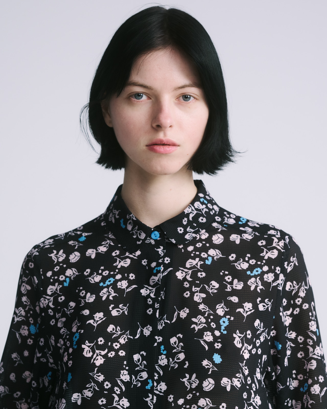大きめの柄が多いCACUMAではめずらしく、細やかな花柄が新鮮なシャツワンピースです。