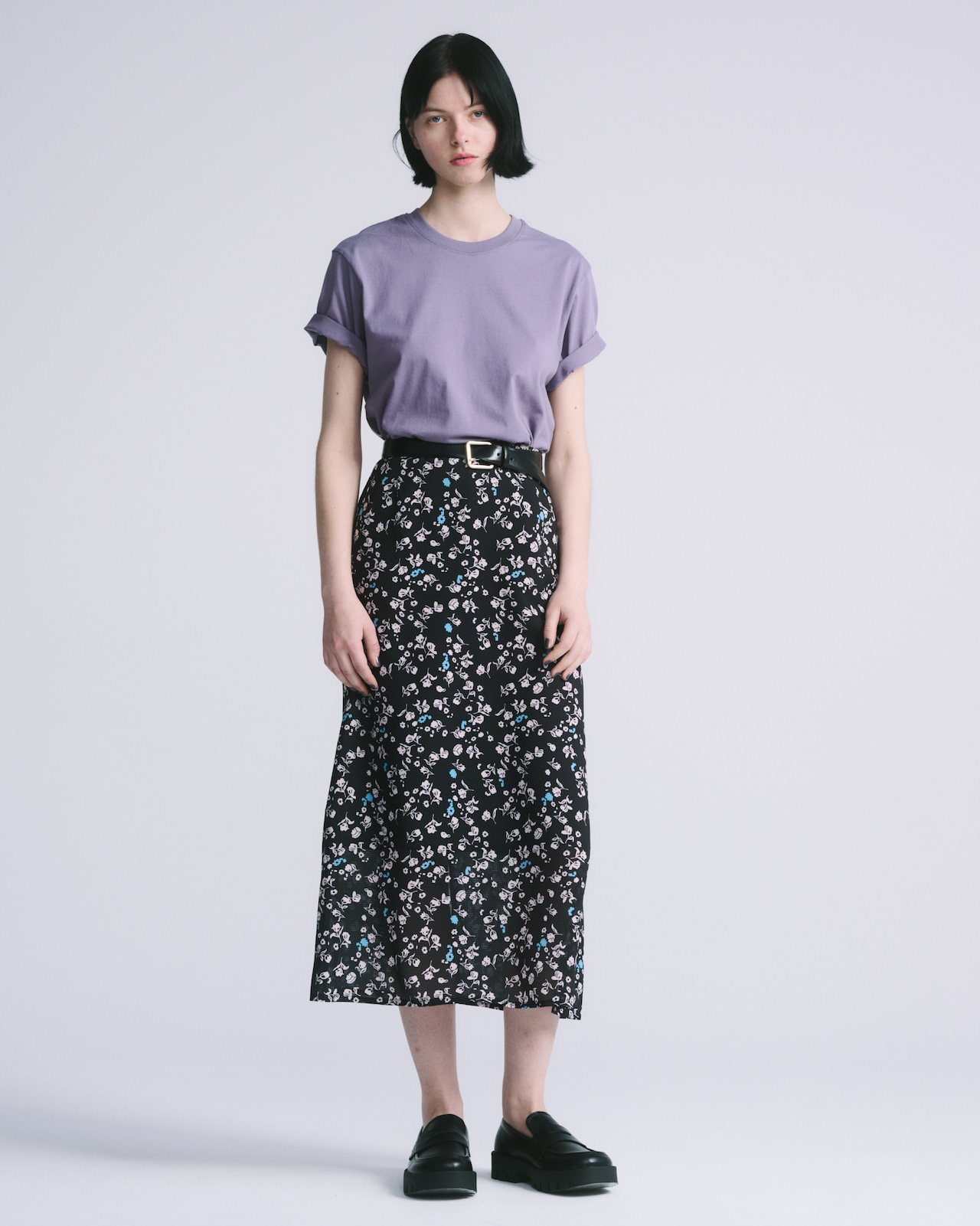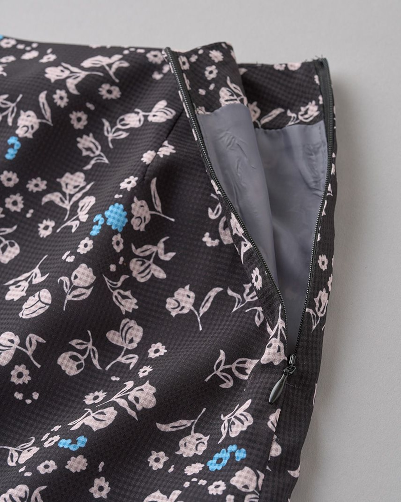 タイトなシルエットを目指したセミフレアのスカート。