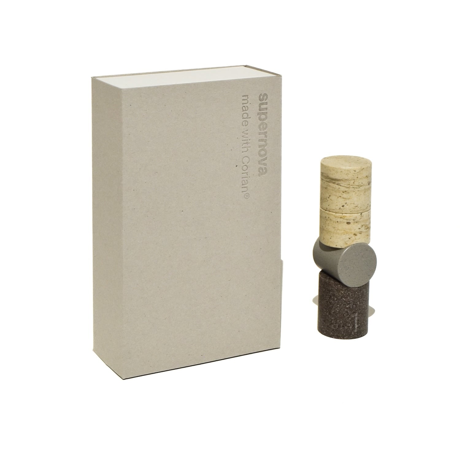 北海道旭川市のササキ工芸によって設立された『コーリアン®(人工大理石)』を使用したプロダクトブランド、supernova(スーパーノヴァ)のソルト&ペッパーミルです。