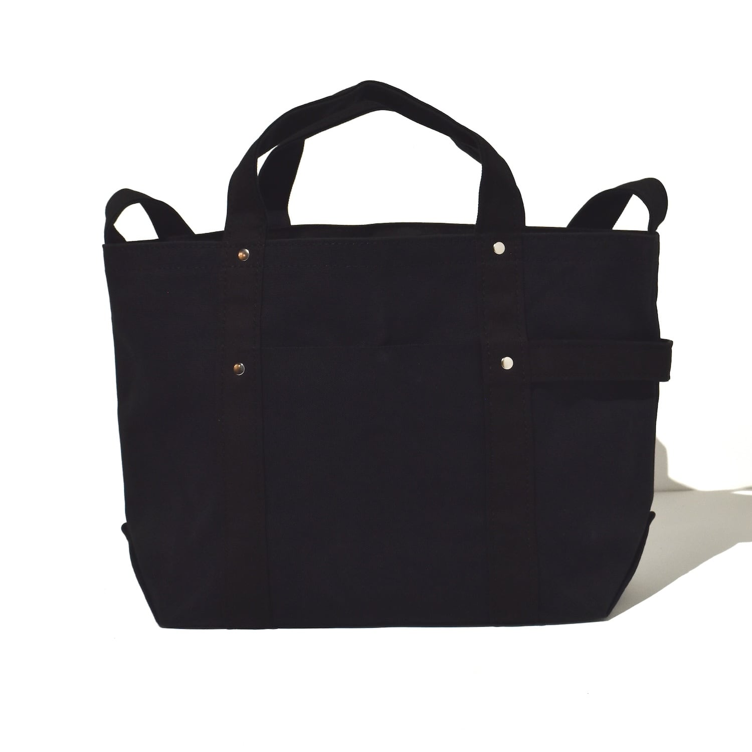 こちらは、16インチのPCもぴったり入り、普段使いもしやすいサイズ。サイドの持ち手は荷物が重い時の補助的な役割や、荷台などからバッグを降ろす時に取り出しやすいよう付けられています。