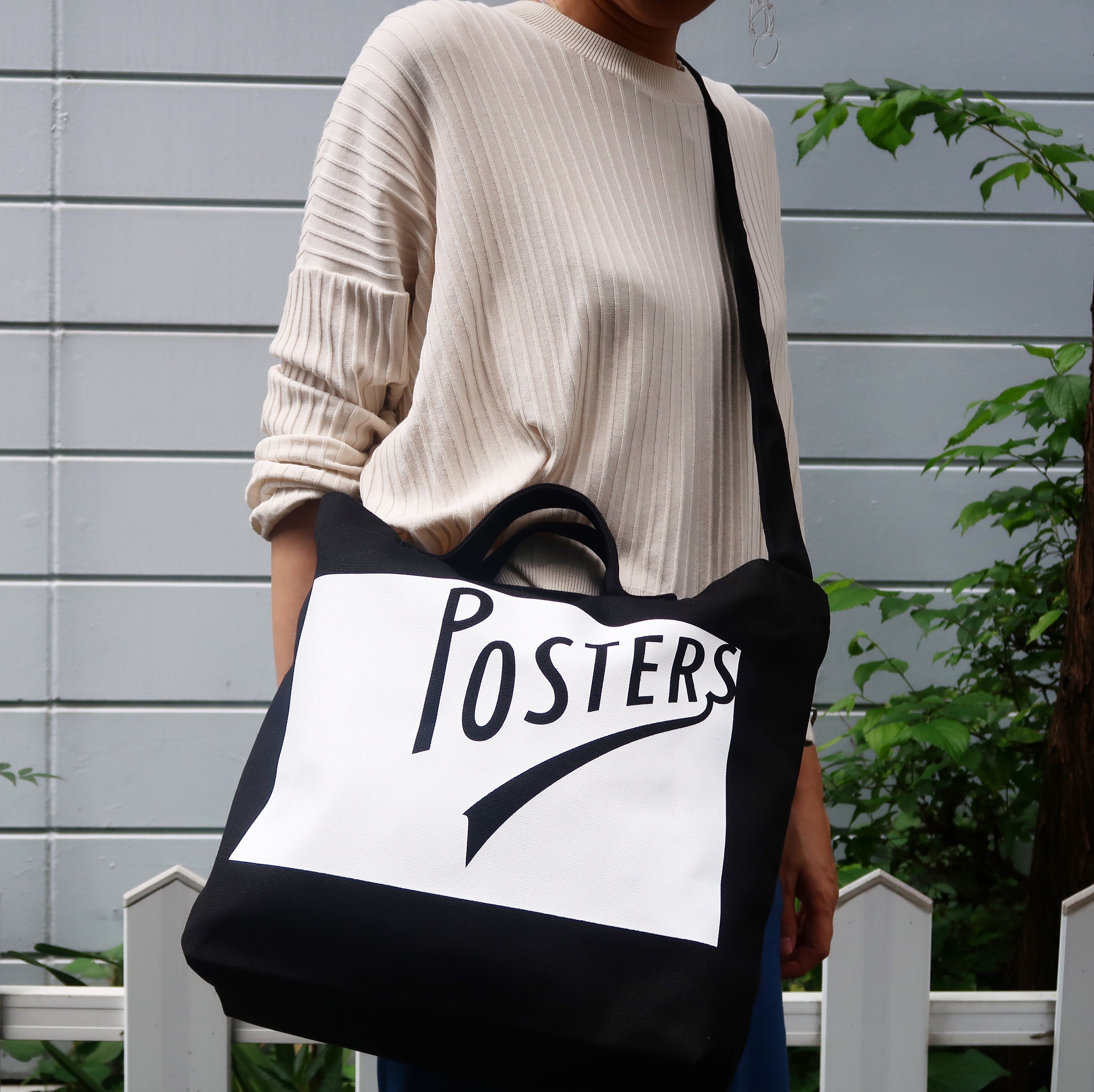 グラフィックデザイナー、仲條正義さんデザインのPOSTERSロゴをプリントしたトートバッグ。手提げにも、斜め掛けにしても使える便利な2WAYショルダートートです。厚手の生地を使用しており、内ポケットもあり収納力も抜群です。
