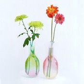 一見すると何気ないビニールパック。 水を入れるだけでぷくっと膨らみ美しい花瓶に変身します。 割れることがないので小さなお子様もご使用いただけます。折り畳むと場所をとらずに収納もできてとても便利です。 ひとつのパッケージに2種類入っているので、気分やお部屋の雰囲気に合わせて着せ替え感覚でお楽しみ下さい。 プチギフトにもおすすめの一品です。